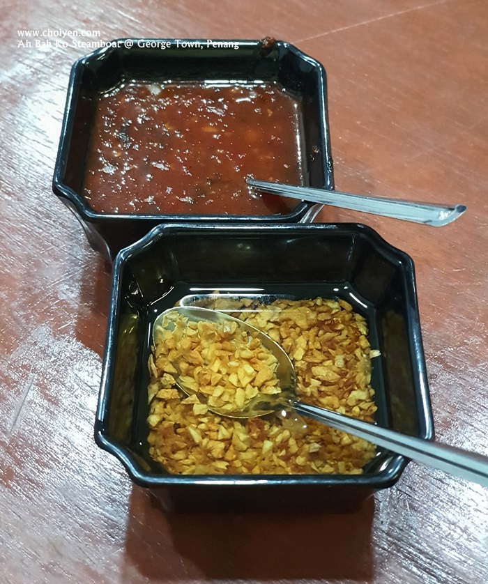 Condiments offered to pair with the hotpot – homemade chili sauce and fried garlic oil.
