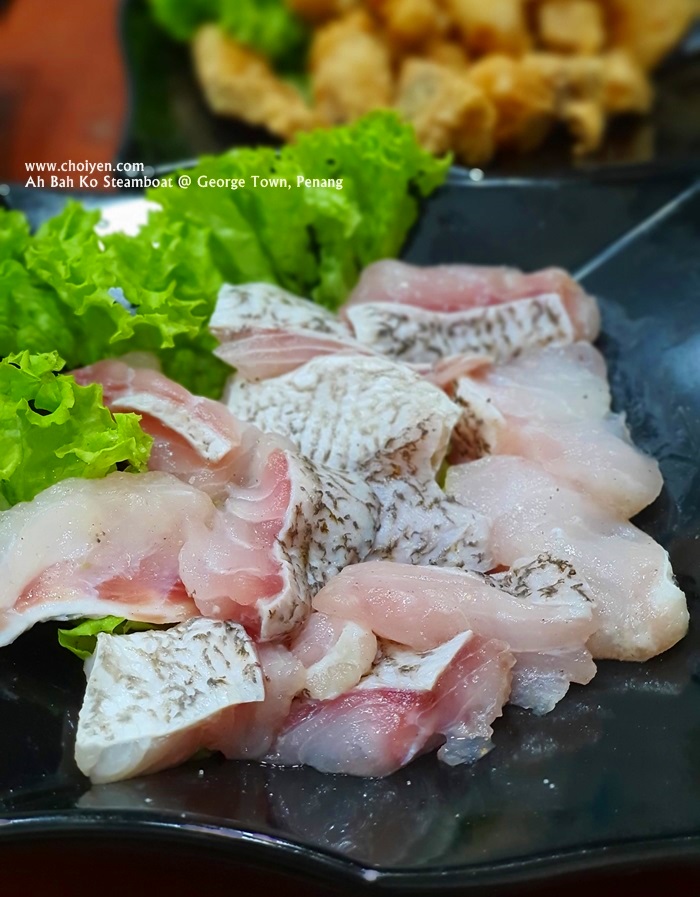 Ah Bah Ko is specialist in grouper fish head hotpot (which is rather rare in Klang Valley) served in traditional charcoal steamboat pot. There were two options (portions) of fish hotpot set which priced RM68.00 & RM128.00 respectively. Choices of soup base for ala carte included their signature Yam Milky Fish Head, Chicken, Tom Yum and White Tom Yum. You can also add-on more ala carte ingredients from their extensive list of menu comprised the usual meat balls, meat slices, seafood, bean curd rolls, assorted veggies, mushrooms and noodles.
