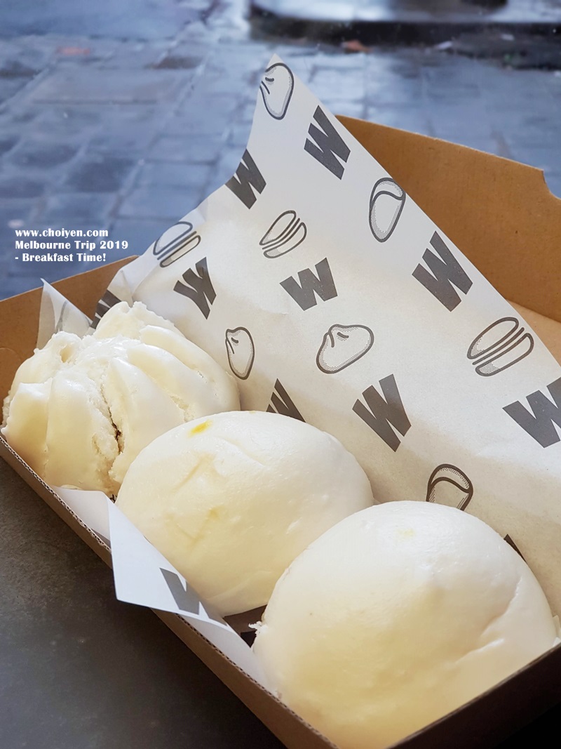Assorted baos – Char Siu Bao (AU$2.70) & Egg Custard Bao (AU$2.50)