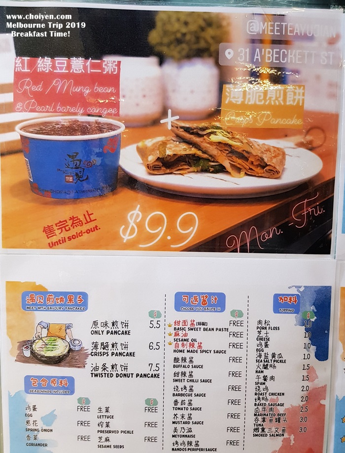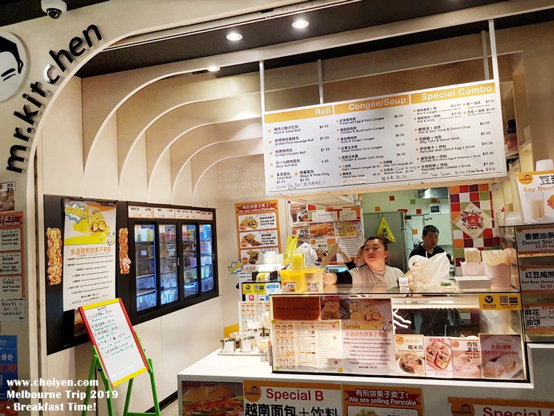 Mr. Kitchen – Also accessible via food court at Melbourne Central (take away only), the main dining area of Mr. Kitchen is located at Swanston Street. If you have “oriental taste bud” or bored of the western food at Melbourne, Mr. Kitchen definitely suit you well! The menu comprised a mixture of Chinese and Vietnamese food included banh mi (pork & salad  roll, grilled chicken roll), congee, soups, pies, pancakes, hotpots, bbq skewers, meat buns, herbal drinks, soy milk, juices, and many more.