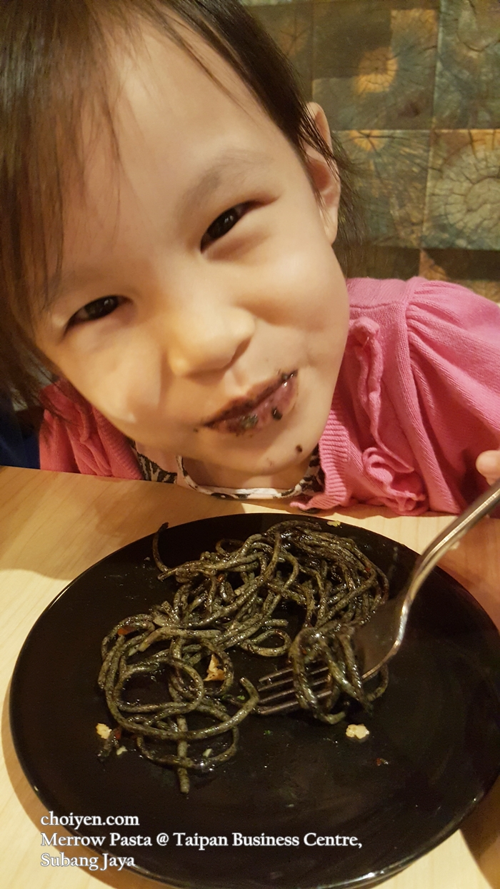 Hmmm, even your daughter is braver than me….I still have not tried squid ink pasta as I’m afraid it might taste a bit fishy! >.<