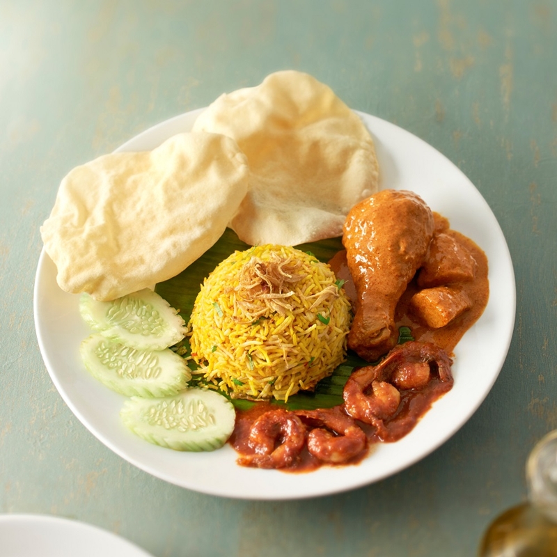 Nasi Briyani with Fried Chicken & Sambal Prawns – RM25.90