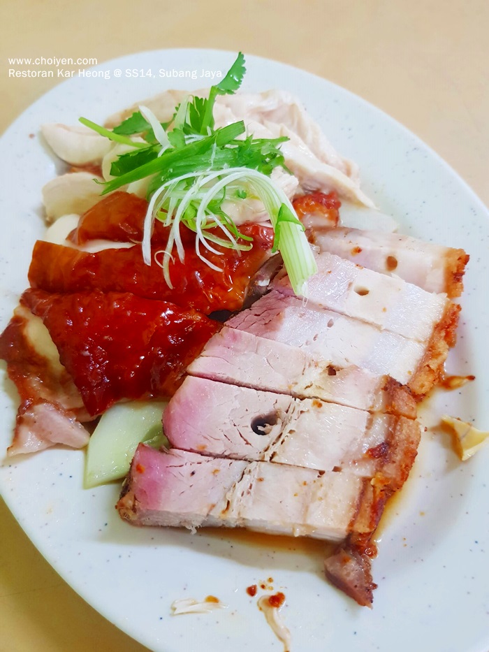 The enticing sight once you stepped into Restoran Kar Heong at SS14, Subang Jaya. Roasted chicken, roasted meat, poached chicken and Char Siew hanging gloriously in the food preparing counter to tempt the passers by.
