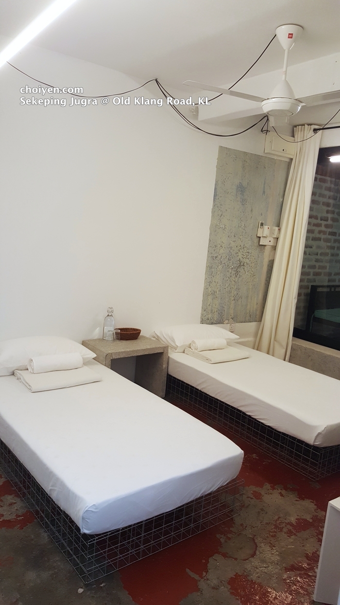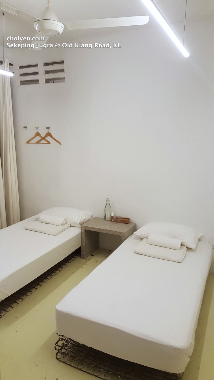 This is the courtyard room we got which is connected with the indoor kitchen. The space isn’t really big, furnished with two single beds, a side table with drinking water and two bath towels.