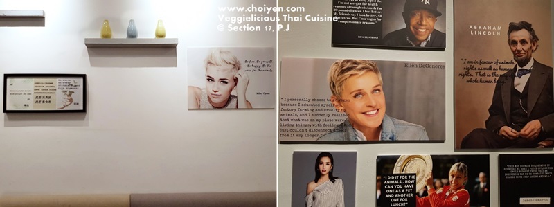 Framed portraits of celebrities which are vegetarian or vegan still remained as the main decoration element in the restaurant.