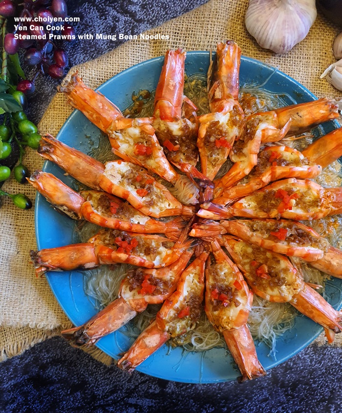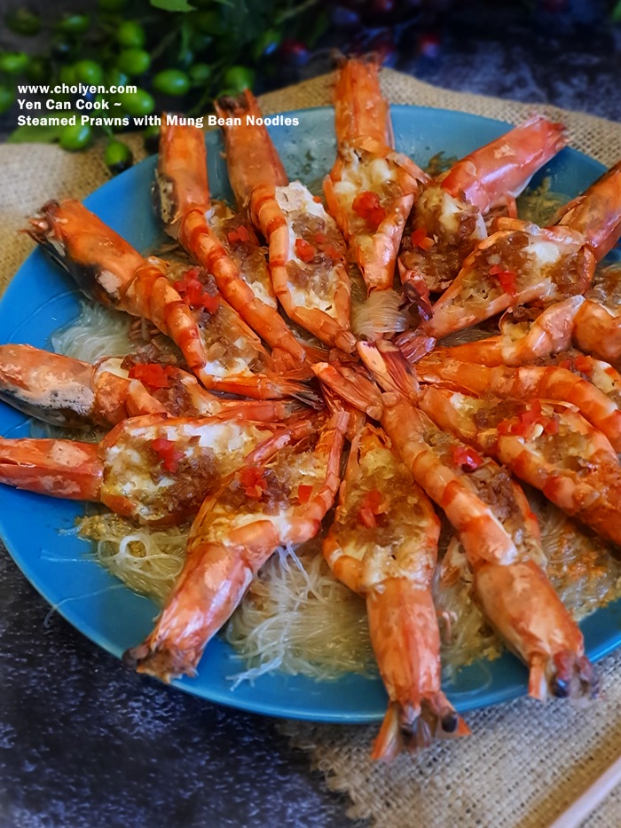 Yen Can Cook ~ Steamed Prawns with Glass Noodles