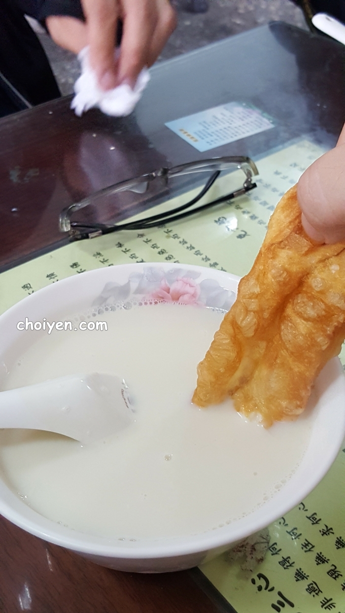 The combination of soy milk + you tiao is a popular breakfast option among Taiwanese and there are 2 famous brands in Taipei ~ Fu Hang Soy Milk (阜杭豆浆) & Yong He Soy Milk (永和豆浆) both selling sweet and savory soy milk, Tau Foo Fah, 烧饼油条 (sesame flat bread with You Tiao & egg) & other delicacies.