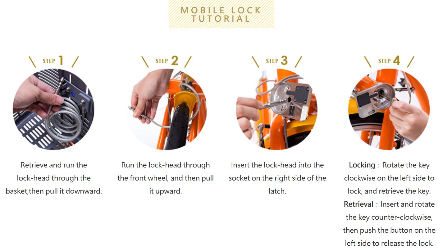 If you need to temporary park the bicycle, here’s the guide how to lock the vehicle.