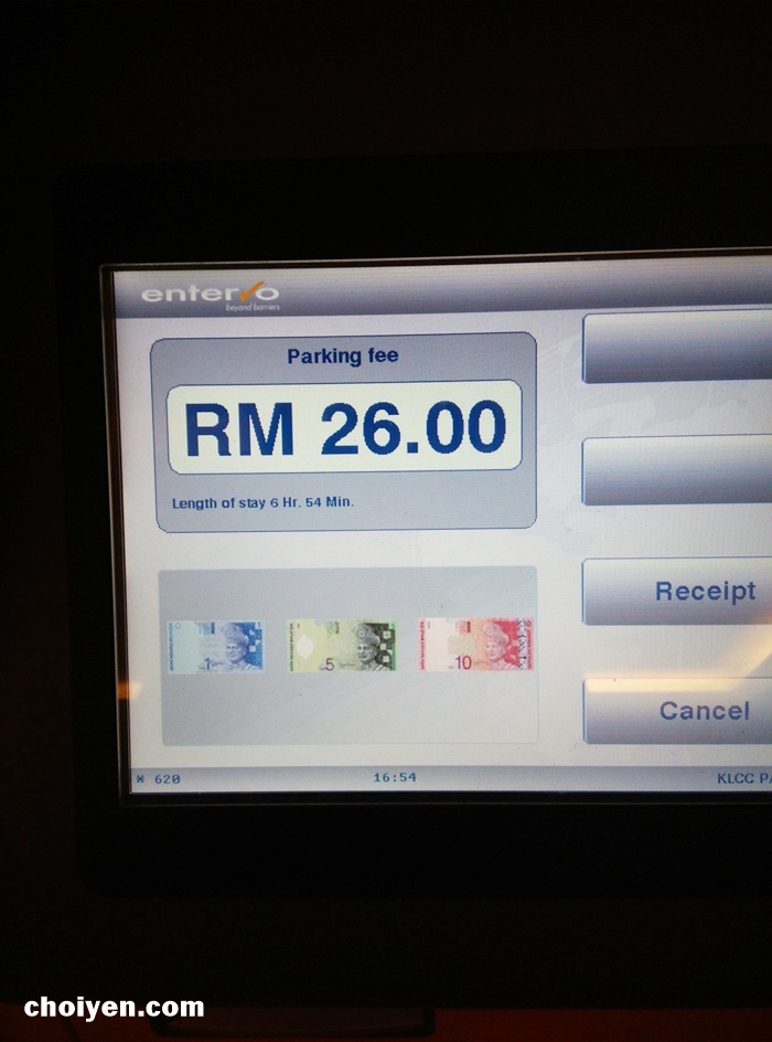 在KLCC 大半天的代价! 当这个价钱是真的吓了我一跳!知道在KLCC泊车不会便宜,但没想到是这个数目咯 (≧∇≦) 要不是那天有点赶,不然通常我们是不会把车停在这里。