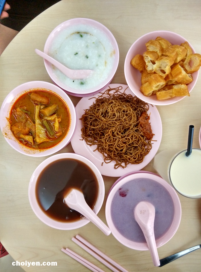 早餐来点不一样的,白粥油炸鬼+经济米粉&糖水 🙂
