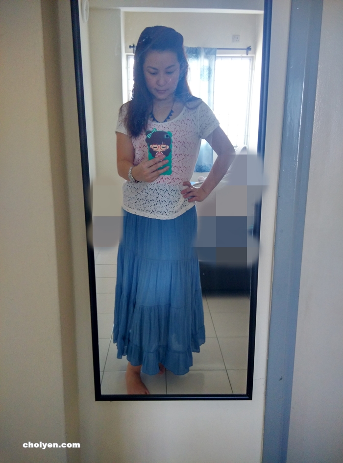 拼命缩那像怀孕了4,5个月的肚腩,辛苦到~~~ >—- please 啦! 你那样还要complain? 很想打你!