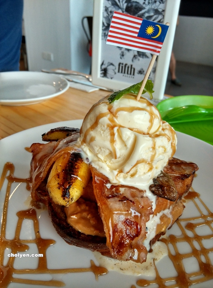 那法式吐司集合了培根,花生酱,焦糖香蕉,雪糕及黑啤酒酱,你说犯规不犯规!