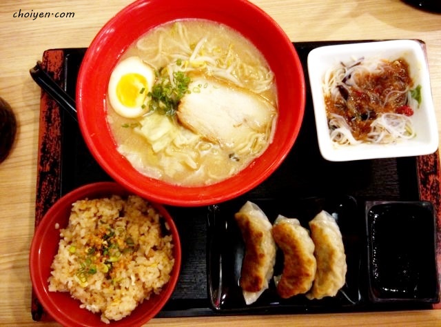 份量十足的豚骨拉面套餐,有蒜米炒饭,日式饺子和沙拉. 味道嘛就还可以,果腹就绝对没问题.