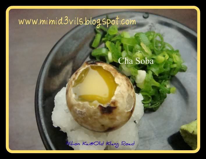 冷面 (Cha Soba)。。。其实不太知道那鹌鹑蛋是怎样弄得咯,我们把它放进汤里,不知对吗?有人知道吗? :p