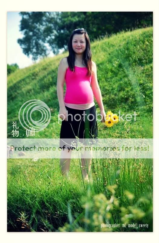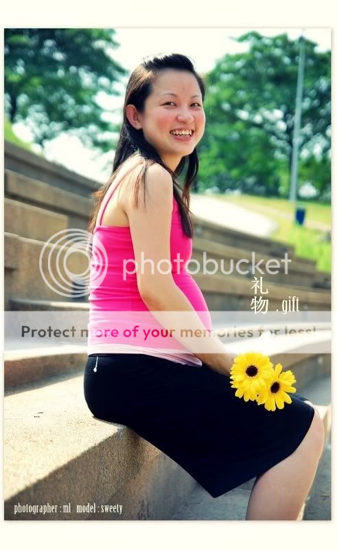 除了圆圆的肚子,准妈妈还是瘦瘦小小的,羡慕死人了~^^