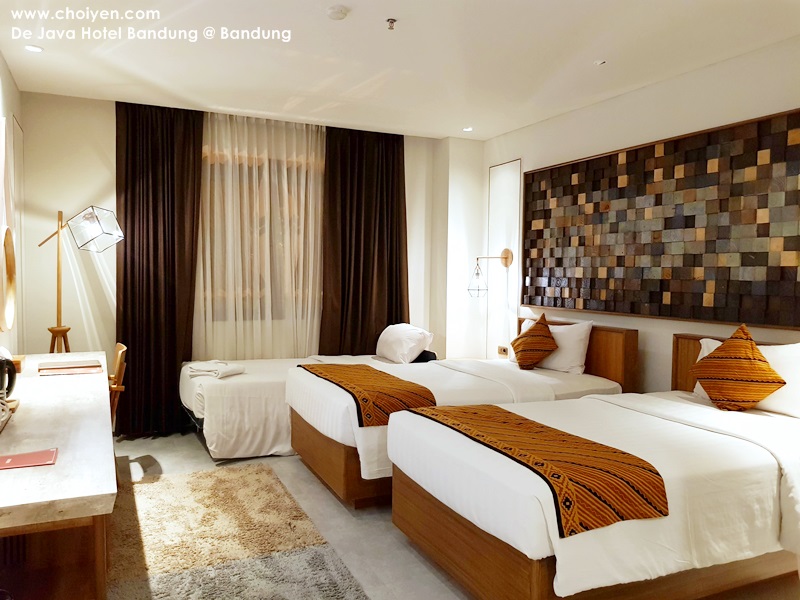 There are 5 types of rooms and suites to choose from, namely Superior, Deluxe, Executive, Junior Suite, Suite. Our 30sqm executive room with modern Javanese setting was spacious (even with 3 beds). Dressed in bright white theme, the room was furnished with concrete flooring, wooden furniture, huge woven pattern art piece and ambient lighting to create a comfy and cozy ambience. However the mattresses were a bit hard for my liking.