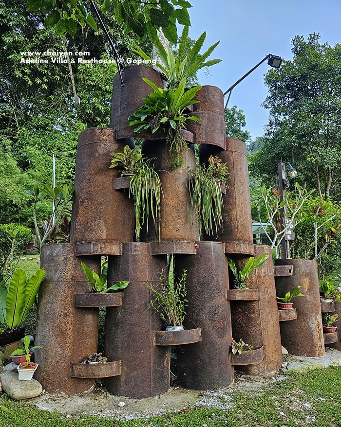 The old Gopeng pipelines as part of the decoration in Adeline Villa.