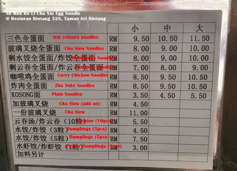 Ah Men Bo Li Cha Xiu Egg Noodle @ Restoran Bintang 328, Taman Sri Bintang, Kepong