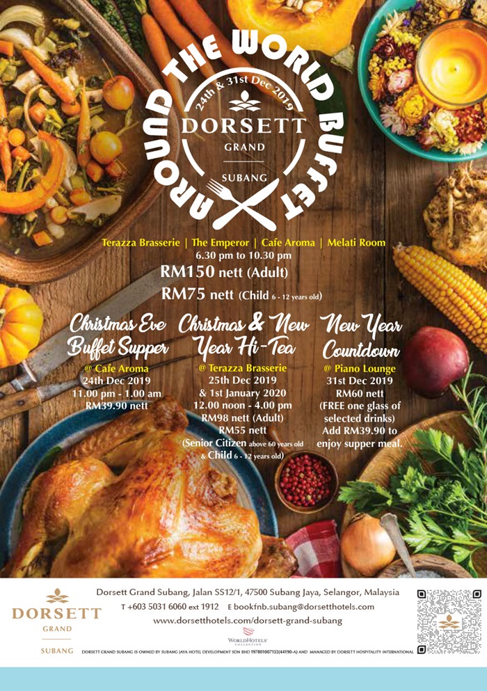 The festival seasons are just around the corner! This year let Dorsett Grand Subang take you on a merry gastronomic journey where their master chefs present an array of irresistible yuletide indulgence. Be dazzled in every cuisine from Dorsett Grand Subang’s Terazza Brasserie sumptuous Christmas & New Year Eve Buffet Dinner or Christmas and New Year Hi-Tea, Cafe Aroma’s Christmas Eve Buffet Supper and Piano Lounge’s New Year Countdown.