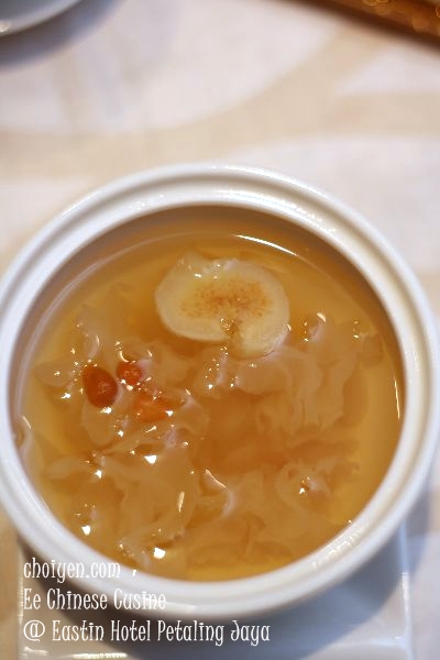 To put a sweet endnote to the satiated dinner we had a dessert featuring a double boiled sweet soup accompanied with a dim sum pastry.