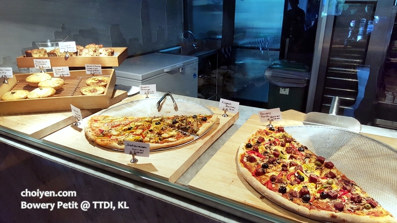 It is a rather small space which can be easily occupied with 20+ patrons. The setting is pretty simple, a row of seats along the walls facing the pastries and baked goods display counter as well as the pizza bar and kitchen at the back of the shop. The interior is clean overall yet not lack of details such as stylish lighting, ceiling with wooden details and also the silhouette of the Big Apple’s skyline features on the wall.