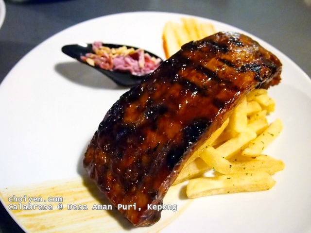 A rather sizable serving for individual serving. It was a tender slab of pork ribs, gleaming in a deep mahogany colour and basted with glistening sweet and sticky sauce. The ribs were almost in full lean meat but not dry or coarse like I would expected to be. Also served a side were hill of French fries and coleslaw.