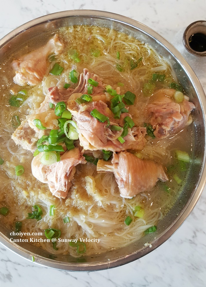 The top seller in Canton Kitchen’s menu. Served pipping in a aluminum pot with burner underneath, the vermicelli were submerged in the gingery soup with minced ginger and chopped spring onions. Chunks of tender kampung chicken completed the dish. Pour in the served along small bottle of ginger wine to amp up the overall flavors.