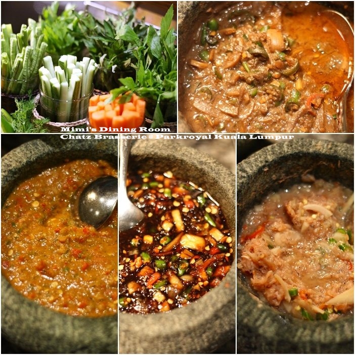 Ulam-ulam in myriad of colours and a few types of sambal and sauces.