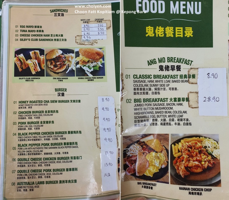 Despite being named as Kopitiam, their menu offers many unconventional dishes in addition of the usual Kopitiam fares. Western delights such as burgers, pastas, chicken chop, lamb chop and pork chop were served here.