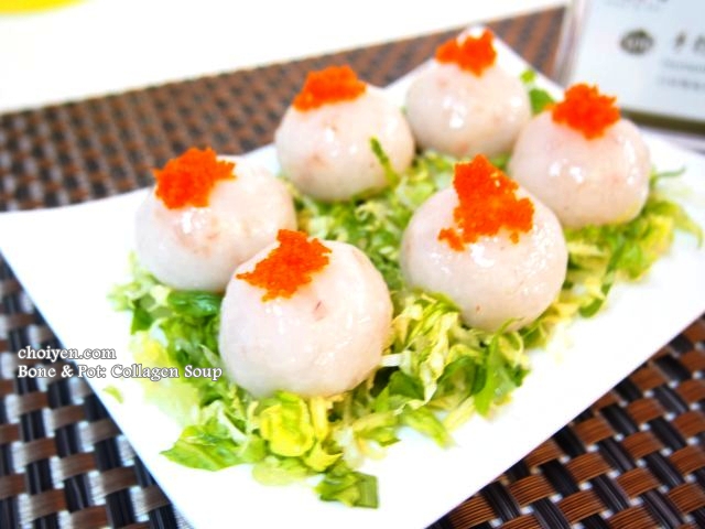 The milky white collagen jelly derived from deep sea marine sources imported fresh from Japan. I can feel the soft suppleness and resilience when I lightly pressed the collagen jelly, literally goodness that can be touched!