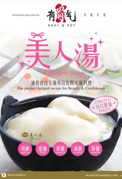 Bone & Pot 有骨气 is famed for its Hong Kong origins and concept and prides themselves with the quality pork bone soup base made from long simmering of bone which expelled its natural essence to the broth. Now the latest new addition to Bone & Pot soup base selection is this Collagen Soup (美人汤) which made from the highest quality fish scales flown in all the way from Japan. The concoction of the collagen jelly and their famous soup stock rendering a delicious broth with amazing skin-benefitting qualities.