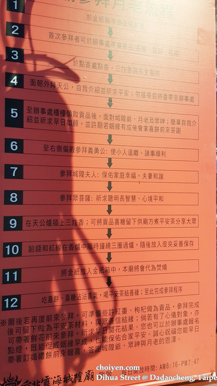 If you’re currently single and on the lookout for your other half, you might want to consider making a visit to the Old Man under the Moon (月下老人) at this centuries old Xiahai City God Temple 台北霞海城隍庙. The old temple houses the City God and his wife. Thousands of worshippers come here every year, for it is said that this deity listens to their prayers regarding potential mates and a plethora of other issues. The temple is particularly lively and crowded for Chinese Valentine’s Day (7th day of the 7th lunar month).