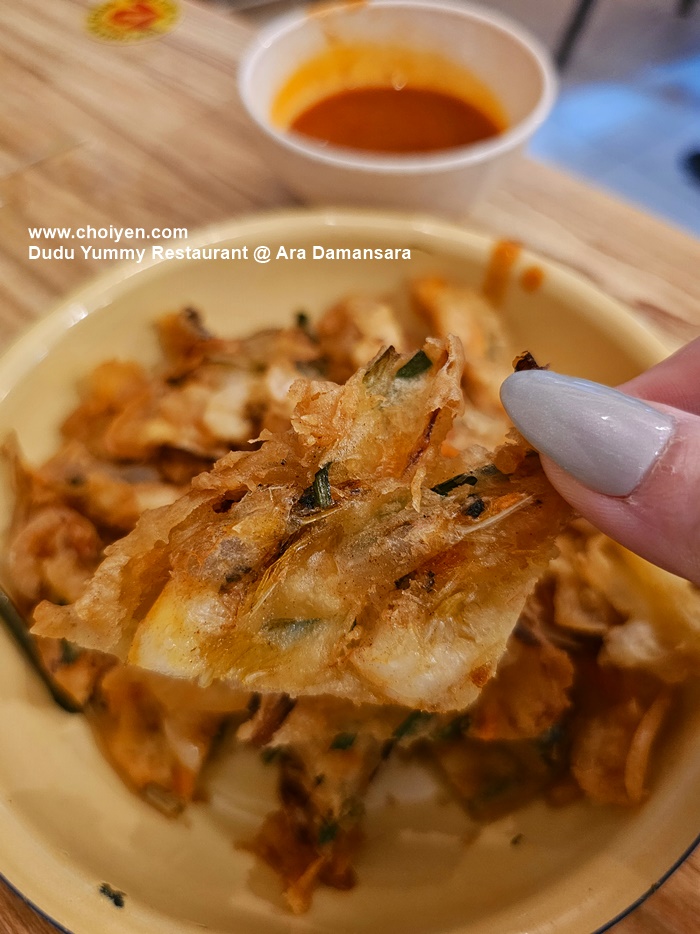 The fritters were studded with generous amount of small prawns, onion and spring onion, deep fried to a crunchy finish. If I have to comment, they could have be better if freshly fried.