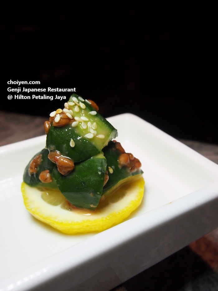 Fresh cucumber dressed in miso bean and sesame sauce. Simple preparation but showcases the both the satisfying crunchy texture and saltiness of the miso beans that complemented each other perfectly.
