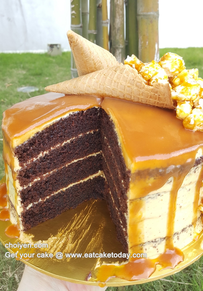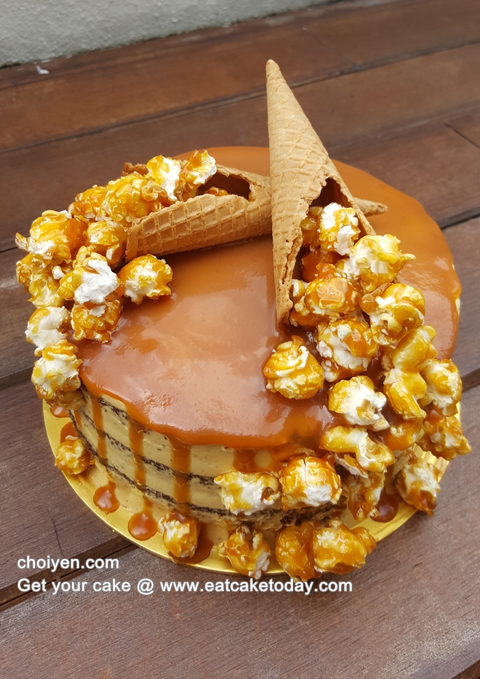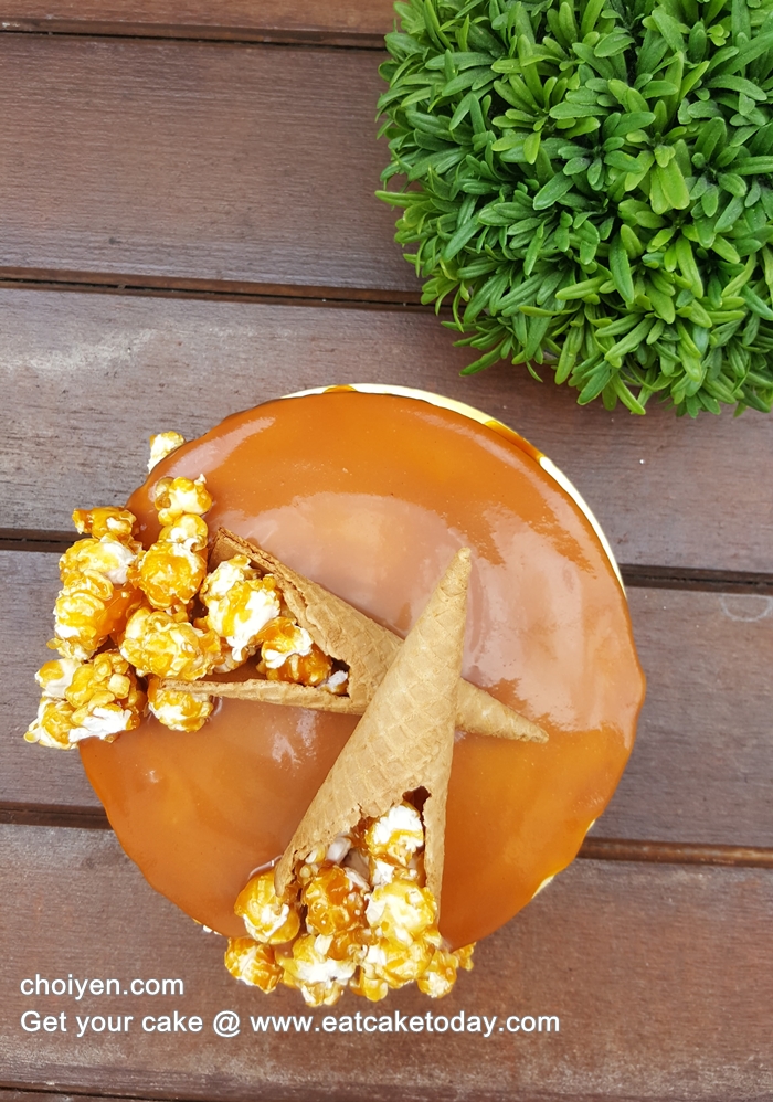 Lusciously slathered with salted caramel sauce and topped with caramel coated popcorn in cones, the chocolate cake sandwiched with salted caramel buttercream is really moist and soft. Being an avid fan of salted caramel, I was on cloud nine when savouring this!