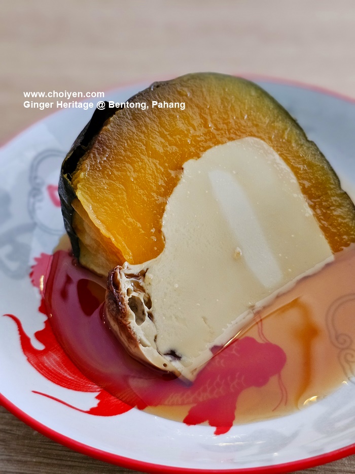 This is a traditional Thai dessert in which a hollowed-out pumpkin is filled with a creamy coconut milk custard, cooked until tender and sliced into wedges like a pie. Ginger Heritage version was rather delish with soft pumpkin (I would have hoped for sweeter one), smooth and mild tasting custard, and sweet ginger infused sauce.