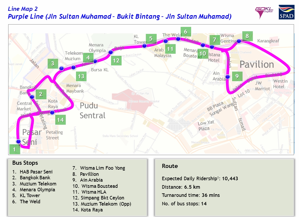 There are 2 routes for GoKL City Bus ~ Purple Line and Green Line which will pass by different places around Petaling Street and Golden Triangle area. Both journey will took time approximately 20-30 minutes per round trip. Please bear in mind that buses for both lines are in purple colour as shown in my previous photo, don’t try to look for a green bus OK πŸ˜›