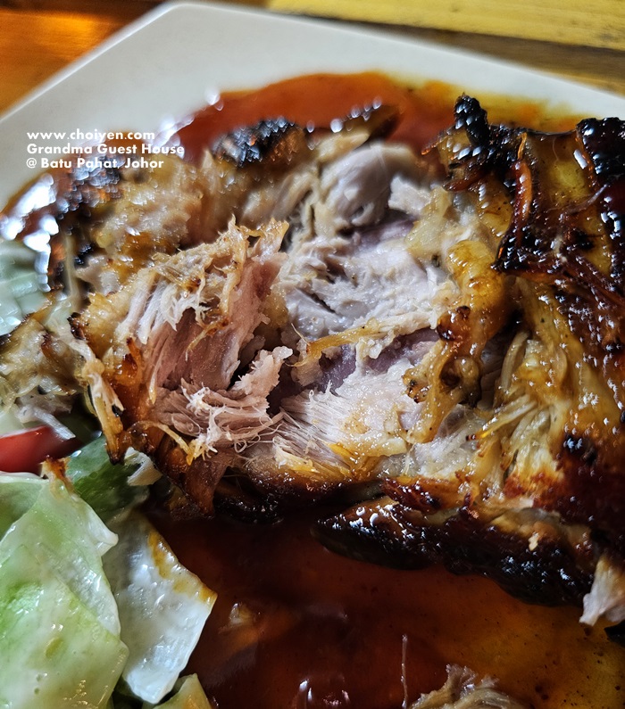 It’s a huge slab of grilled thick pork rib doused in sweet savoury gravy, served along with coleslaw and a few pieces of old school five spice biscuits. Beautifully grilled with a lovely charred edges, the pork rib wasn’t as tender as our Chinese Dong Po Rou (although it looks like from the appearance) but had a good bite texture.