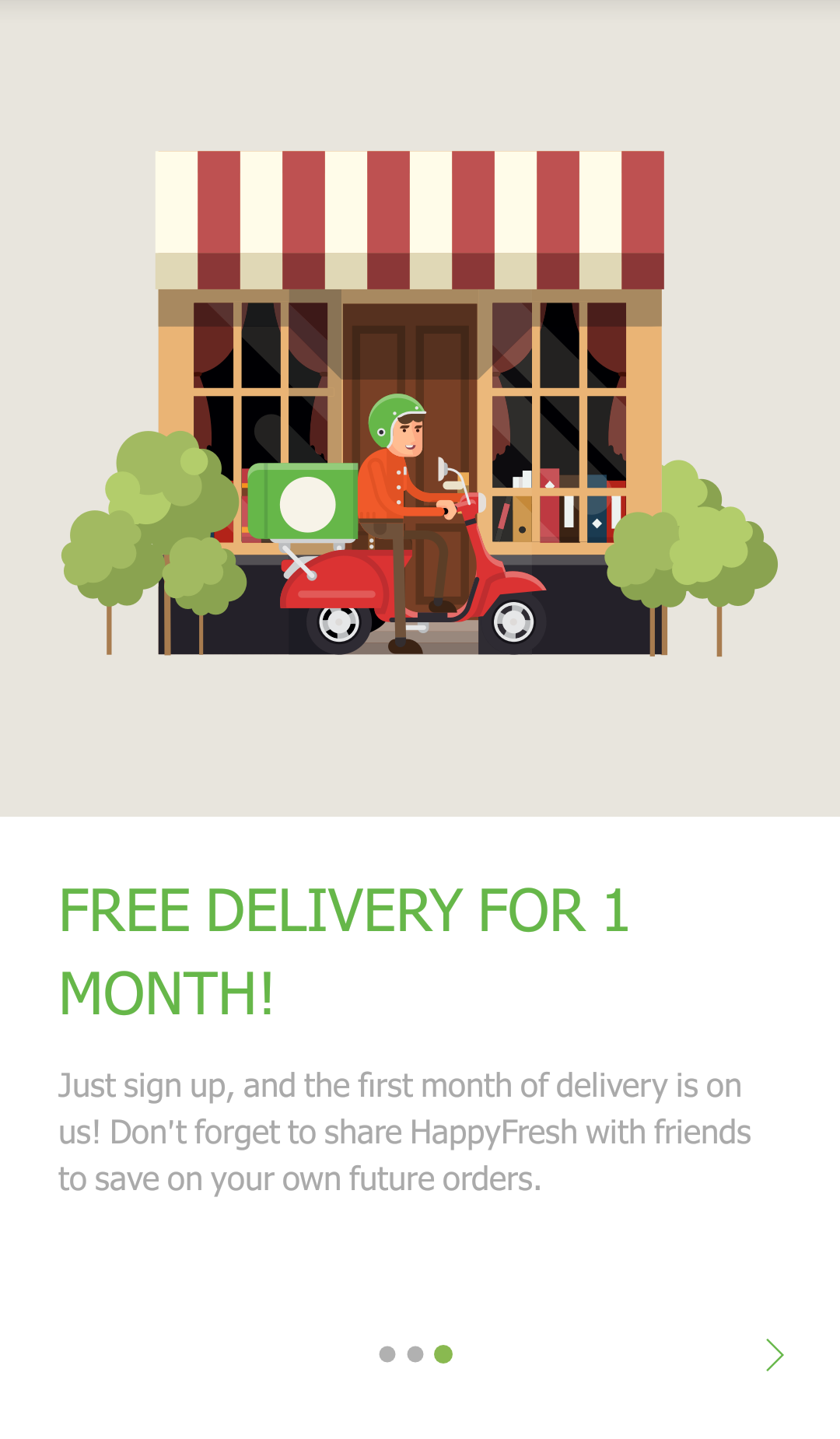 Download the HappyFresh application from your apps store (Android or iOS) or log into their website.