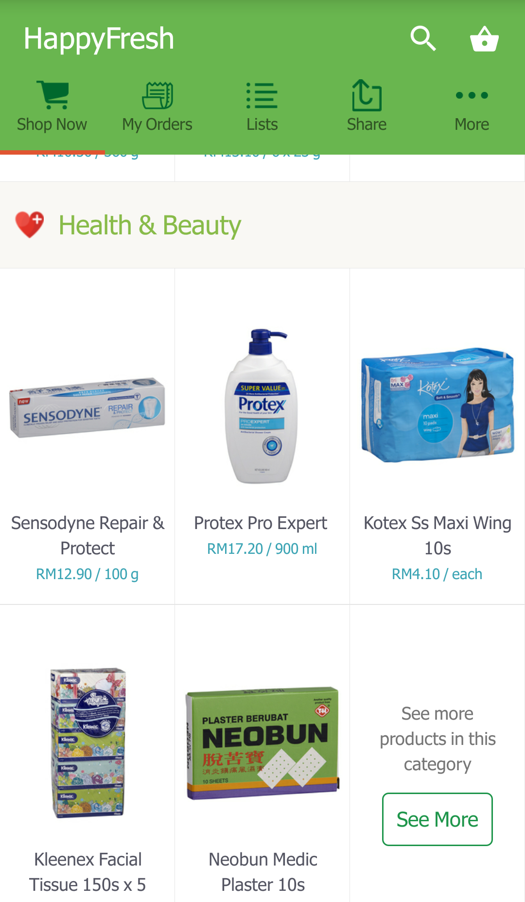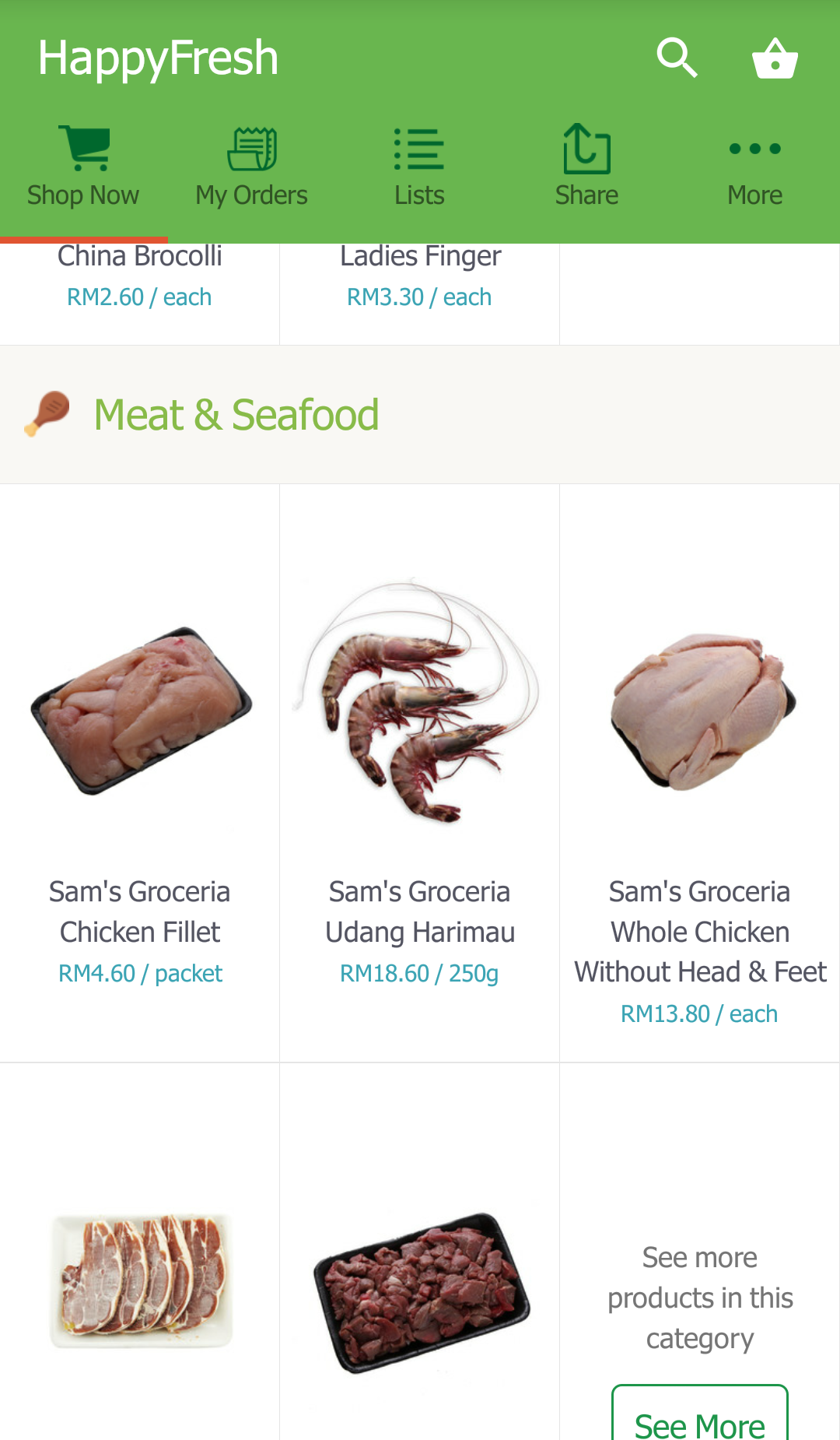 Products available in the store completed with price. Not only fresh produces like meat, seafood and vegetables, there are dry goods such as canned food, household products, baby products as well as health and beauty products. There are even ready-to-eat food! HappyFresh expert personal Shoppers will pick the best quality products for you, just simply add products to your cart and check out.