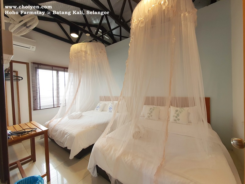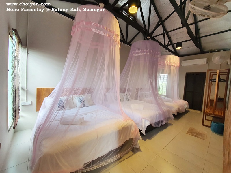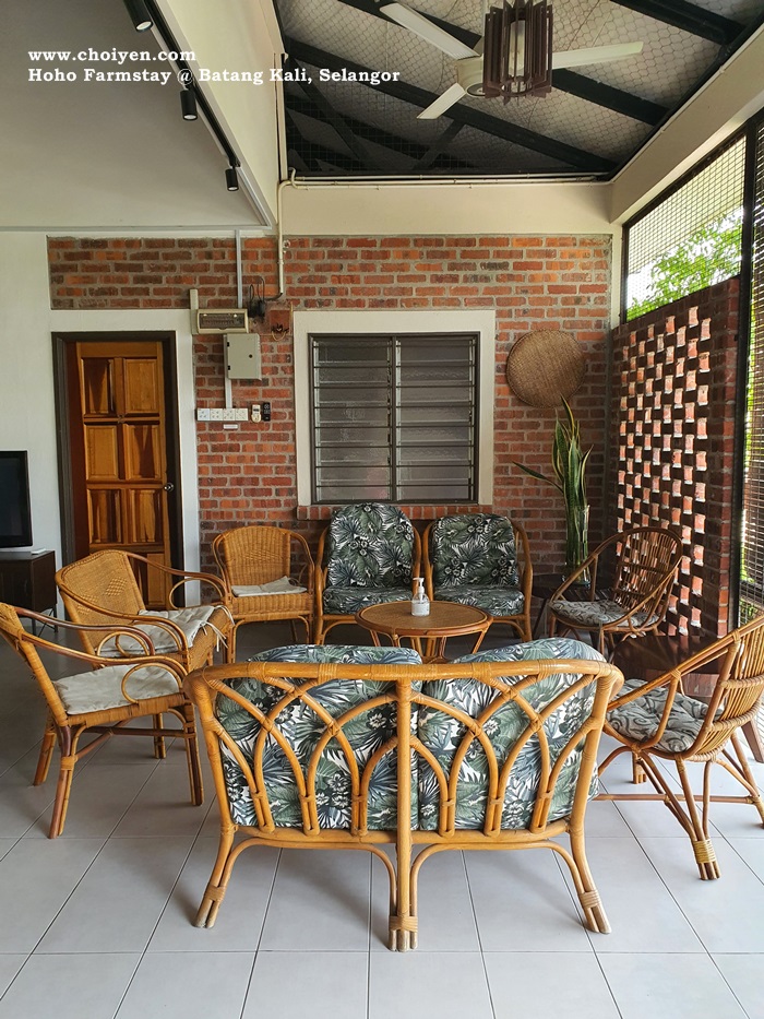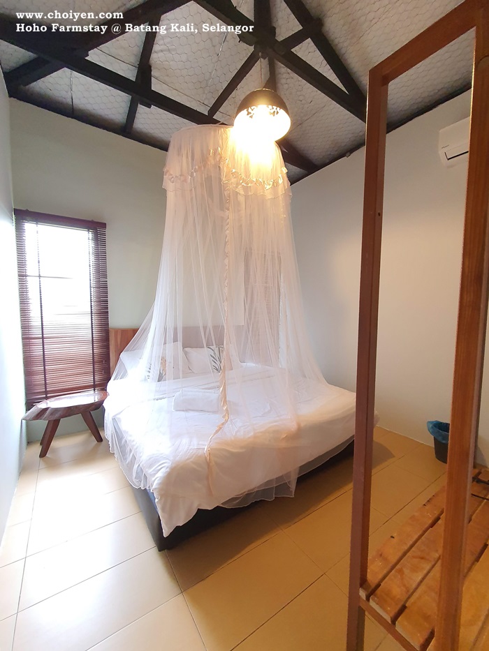The interior of Hoho Farmstay is simple but functional, and the setting exudes a cozy homey feel. The living room is furnished with rustic rattan chairs, TV, decorative ornaments were placed sparingly and potted tropical plant to add the liveness to the ambience. The living area isn’t equipped with air conditioner but the comfort level was covered with sufficient ceiling fans, wall fan and standing fan.