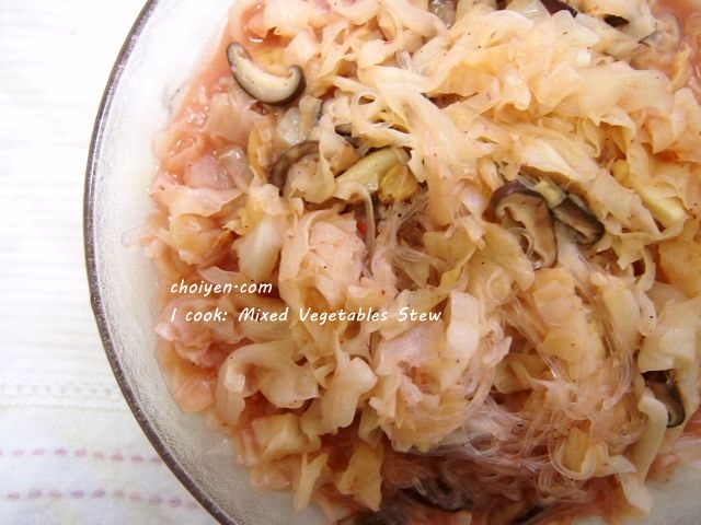 Remark: Other ingredients that can be added into this mixed vegetables stew such as bean curd sheet ( (腐竹), dried lily buds (金针) & carrot.
