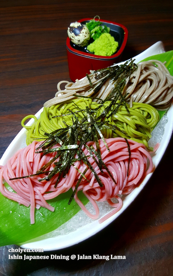 The cold soba in trio colour were the original flavor, seasonal Sakura and Matcha served with dipping broth with condiments of raw quail egg, scallion and wasabi. Slurping the al-dente chilled soba with the refreshing broth was simply delightful!