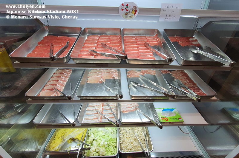 Thinly cut meat included beef, pork and chicken, which refilled rather frequently. The lowest level were yellow noodles, bean sprouts and shredded cabbage, ingredients for DIY Yakisoba.