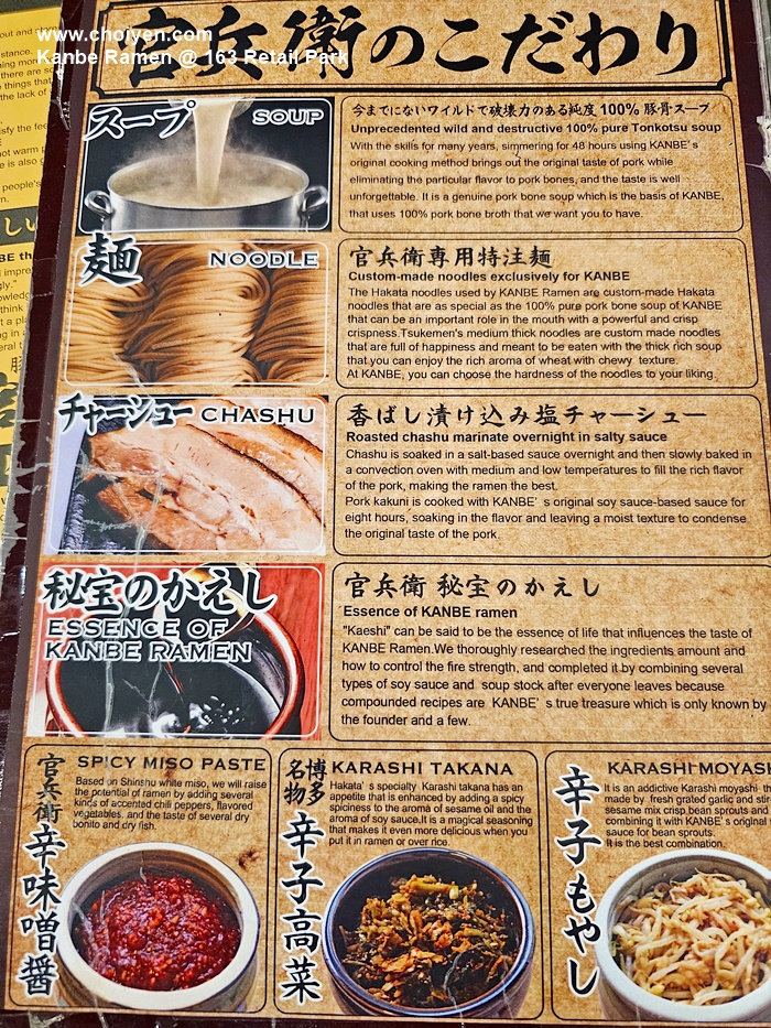 We visit this 163 Retail Park quite frequent, the perpetual queue and the full house scene are the common phenomenon here at Kanbe Ramen. There was no queue on that day, so we took the opportunity to try out this popular Hakata style Tonkotsu Ramen restaurant.