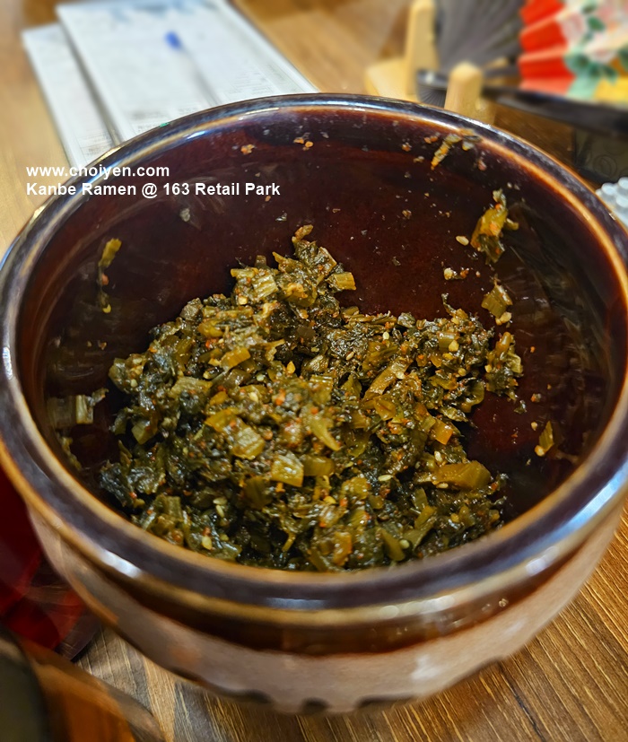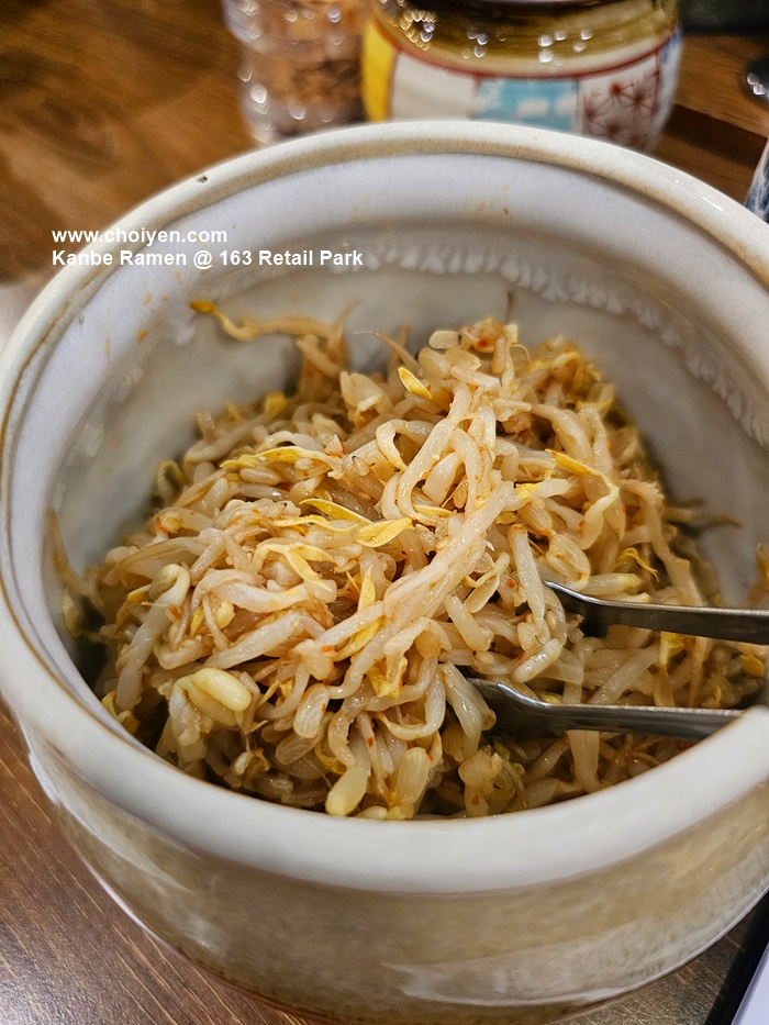 Kanbe Ramen offers the most condiments that I’ve ever seen in a Ramen restaurant, which included the usual Shichimi tōgarashi and the fried garlic, as well as the special Spicy Miso Paste, Karashi Takana (spiced mustard leaves), Karashi Moyashi (bean sprouts with sesame and grated garlic) and fish infused oil.