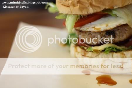 Thick pork patty, cheese, lettuce, tomato slices & fried egg with some tangy sauce make this burger so yummy but the bun is too chewy.