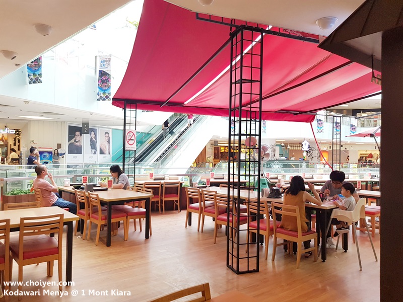 Kodawari Menya doesn’t occupy a proper shoplot but kind of a kiosk located on level 1, diagonally opposite my used to be favourite ramen joint (now it has rebranded and I have yet to try). Simple light wooden furniture were placed neatly under red canopies and seating was rather ample.