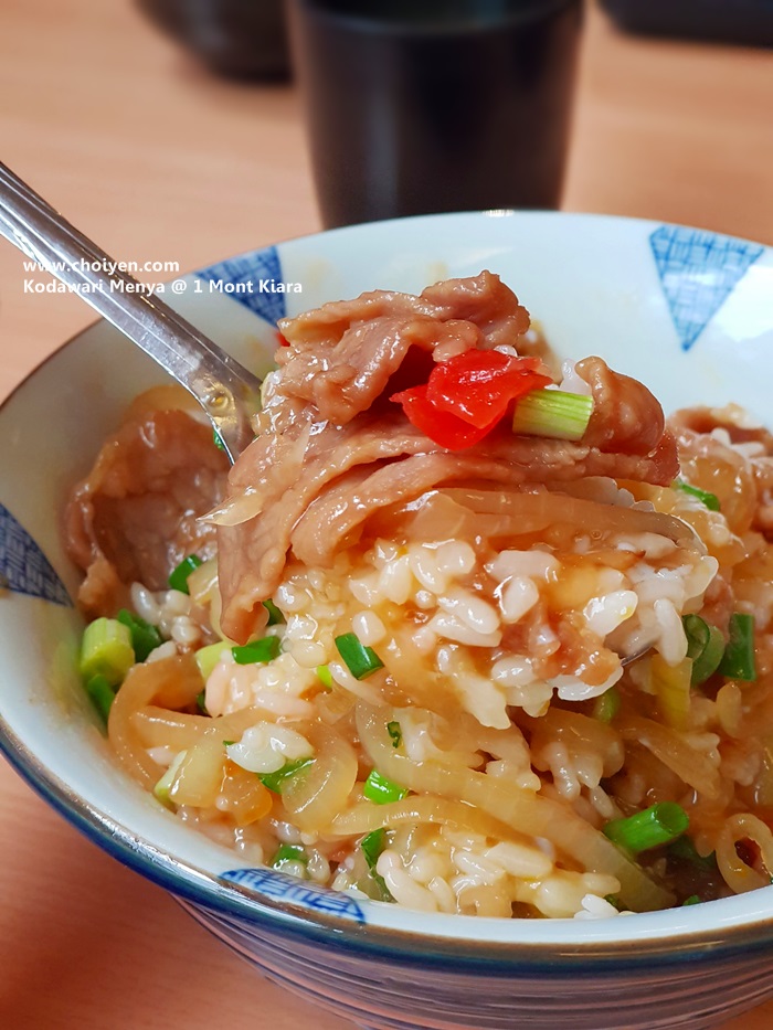 Thin beef slices, caramelized onion, wobbly onsen egg and pickled topped on bowl of short grain rice. The beef slices were nicely tender but beefy flavour was a bit too overwhelming and the overall flavour was too salty for my liking too.