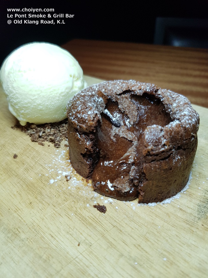 Sam, the avid chocolate fan opt for the Chocolate Fondant which was a dark crusty cake with gorgeous molten chocolatey center. The hot chocolate lava was dark and luscious, contrasting against cold ice cream is deemed a perfect match in heaven!!